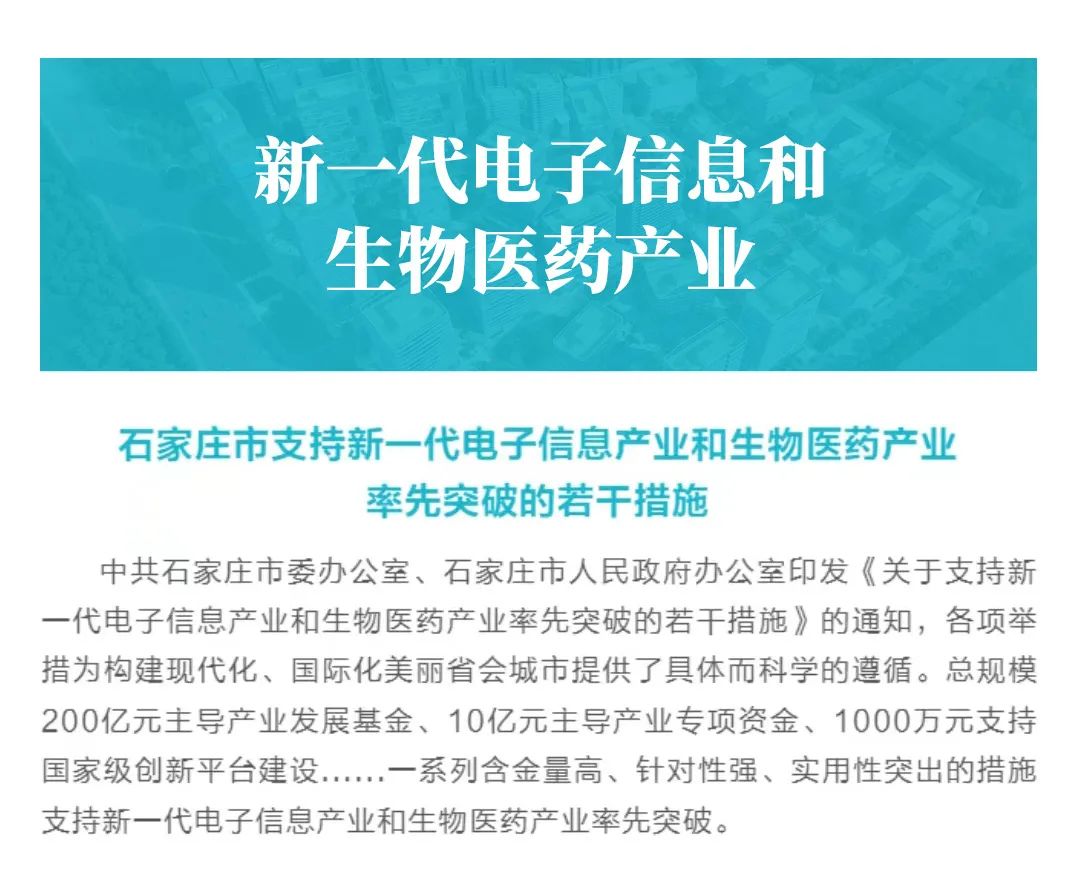 石家庄五大产业政策之新一代电子信息和生物医药产业产业政策简介